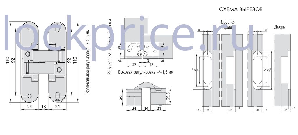 Скрытые петли Morelli с 3-D регулировкой HH-1 PG