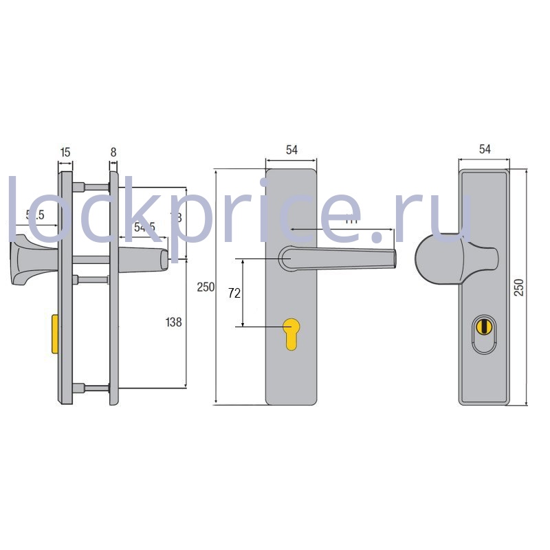 - Большие размеры накладки 250×54 мм перекрывают все старые технологические отверстия на двери и служат для защиты не только цилиндра, но и всего корпуса замка от высверливания.