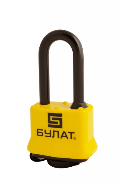 Замок навесной «БУЛАТ» предназначен для запирания, распределительных щитов, почтовых ящиков, гаражей, складов, подвалов и прочих помещений. Замок запирается автоматически при нажатии на скобу без использования ключа. Дужка защищена резиновым чехлом. Корпус замка наборный из стальных оцинкованных пластин. Механизм защищен от замерзания. Пластиковый кожух защищает замок от внешнего воздействия окружающей среды. Замок обладает длительным сроком эксплуатации. Гарантийный срок 5 лет с момента продажи через розничную сеть.