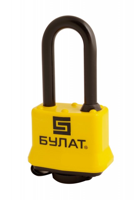 Замок навесной «БУЛАТ» предназначен для запирания, распределительных щитов, почтовых ящиков, гаражей, складов, подвалов и прочих помещений. Замок запирается автоматически при нажатии на скобу без использования ключа. Дужка защищена резиновым чехлом. Корпус замка наборный из стальных оцинкованных пластин. Механизм защищен от замерзания. Пластиковый кожух защищает замок от внешнего воздействия окружающей среды. Замок обладает длительным сроком эксплуатации. Гарантийный срок 5 лет с момента продажи через розничную сеть.