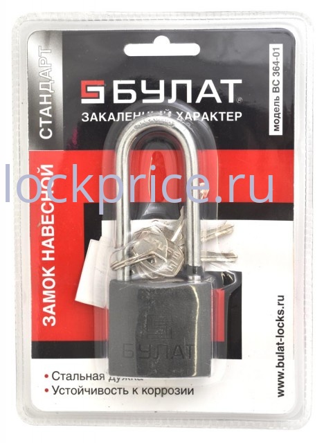 Замок навесной «БУЛАТ» предназначен для запирания распределительных щитов, почтовых ящиков, гаражей, складов, подвалов и прочих помещений. Замок запирается автоматически при нажатии на скобу без использования ключа. Замок обладает длительным сроком эксплуатации. Гарантийный срок 5 лет с момента продажи через розничную сеть.